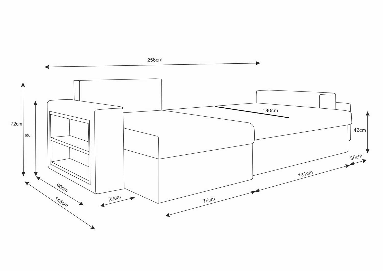 - mit Schlafunktion und Bettkasten, universal montierbar (links oder rechts)