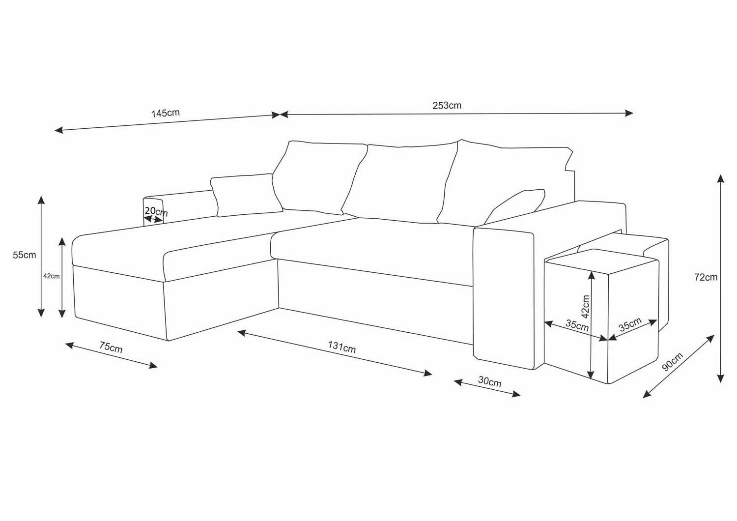 - integriertes Regal und 2 integrierte Hocker (separat stellbar)